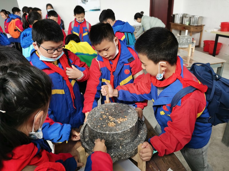开展劳动实践活动,体验古法石磨豆浆