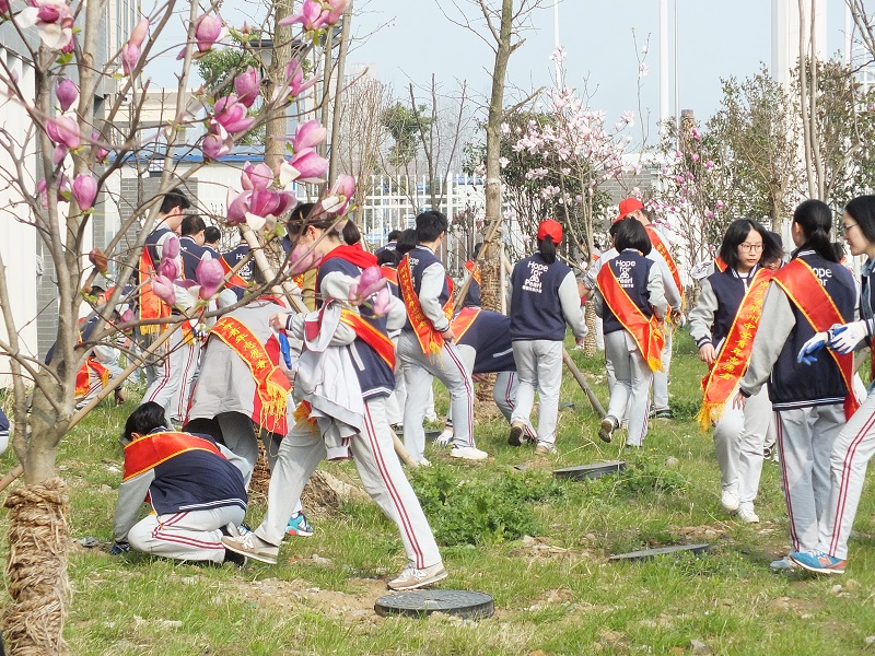 志愿者开展美化校园活动