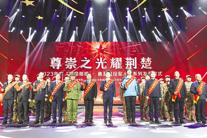 1月11日,2023年度“荆楚楷模·最美退役军人”系列发布仪式在汉举行。袁少敏等10人被授予2023年度“荆楚楷模·最美退役军人”称号。仪式现场还签约发布全省退役军人和其他优抚对象第三批省级优待项目,上线“荆楚英烈网”和“荆楚崇军”小程序。
