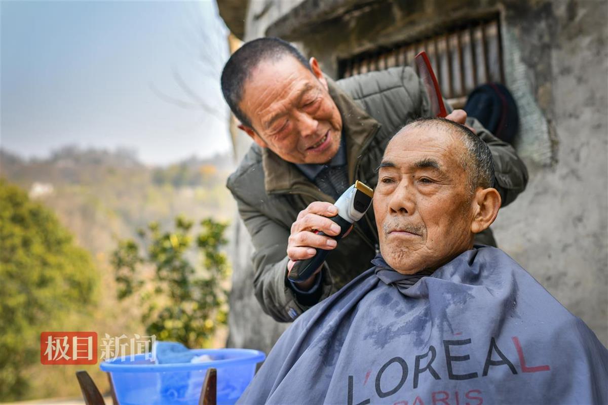 退休后,邓昌雄再次拿起剪刀,在村里当起了“流动”理发师。区别于其他理发师,邓昌雄的理发工具是随身携带的,他的顾客是自己骑着摩托车穿村进组找的。今年95岁的王文洲是邓昌雄的第一批“客人”,因为他腿脚不便,外出理发不方便,邓昌雄第一次找到他要给他理发时,他根本不相信。“我再三跟他保证不要钱,我又跟他讲我父母是谁,家在哪里,他才相信让我理发。”邓昌雄回忆。