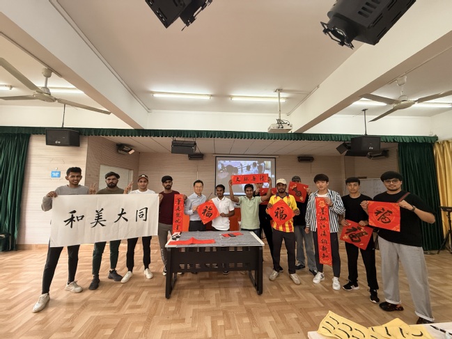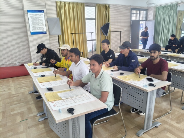 “这几个字寓意着世界文明和谐共存,人类社会和平繁荣。”教学展示中,曹晓斌在宣纸上写下了“和美大同”四个大字,留学生们的笑容在东方哲学的温润中定格。