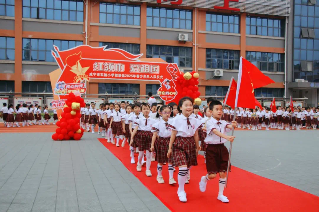 火红的队旗迎风招展,嘹亮的队歌响彻云霄。5月23日,咸宁市实验小学教联体举行“红领巾爱祖国”2025年春少先队入队仪式,564名朝气蓬勃的新队员在庄严的队旗下许下誓言,正式加入中国少年先锋队。
