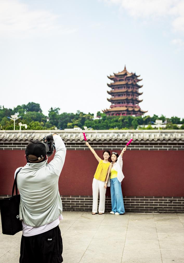 黄鹤楼的强劲吸引力,还在不断外溢。在武汉,得益于严格实施的视线廊道与景观保护规划,黄鹤楼周边40年未建高楼,确保了长江两岸、蛇山周边各个方向都可观览名楼。这种“四面可赏”的景观格局催生众多网红打卡机位,释放出强劲的“同框效应”,拉高了青龙巷、斗级营、昙华林等多处文旅街巷的人气流量和经营收益。