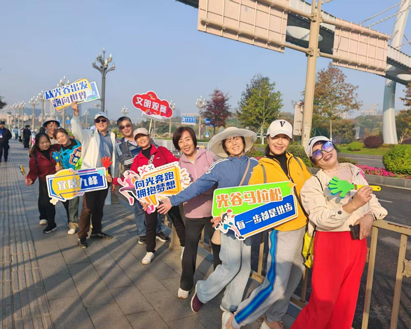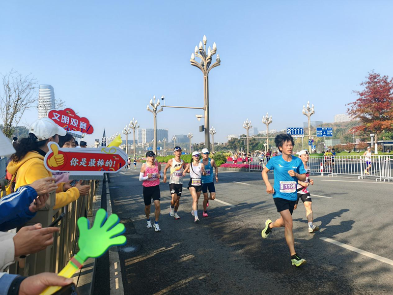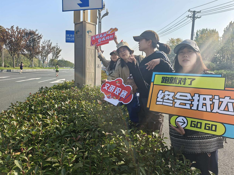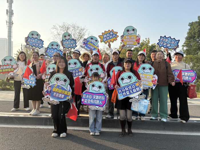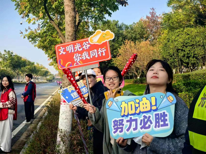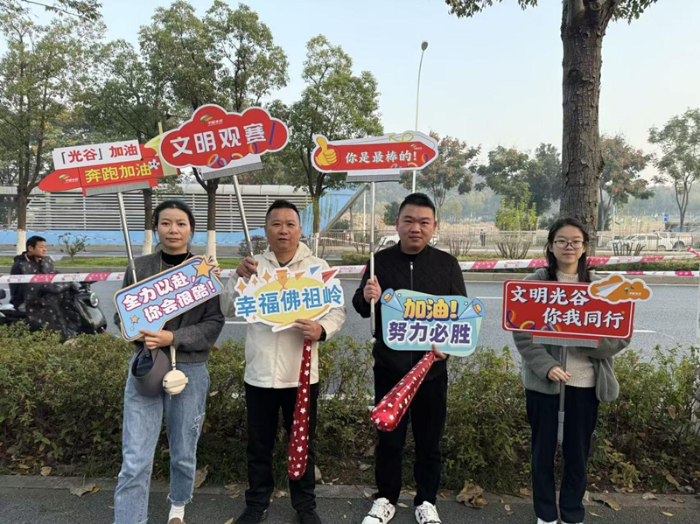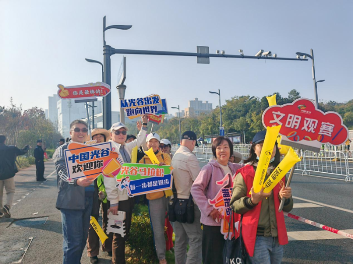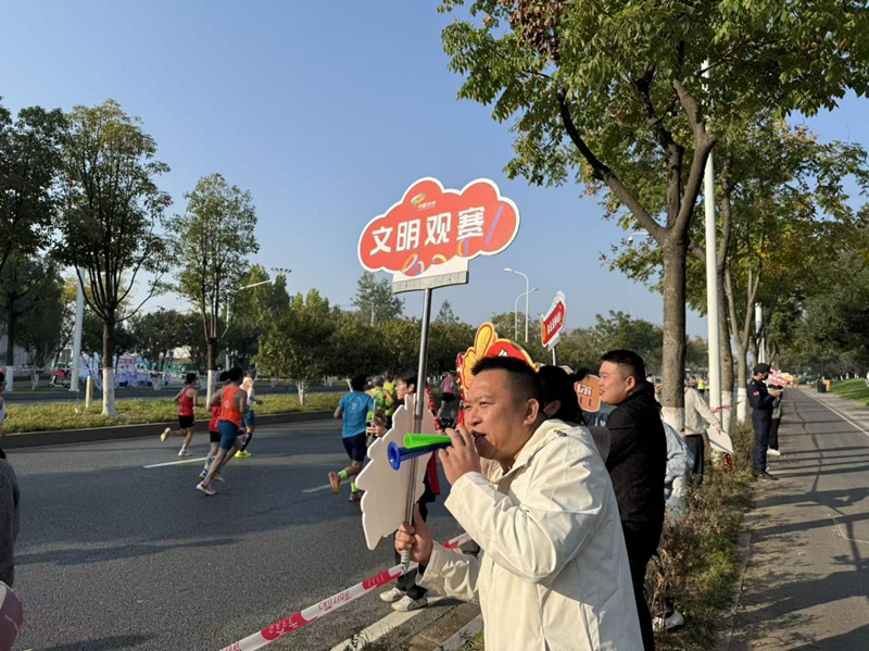 11月16日上午8点,2025光谷马拉松鸣枪开跑。赛场背后,安保人员、保洁人员、志愿者、群众代表等化身“文明观赛团”,引导观众和行人有序观赛、通行,为赛道上奋力拼搏的选手们加油助威,成为赛事中一道亮丽的风景线。