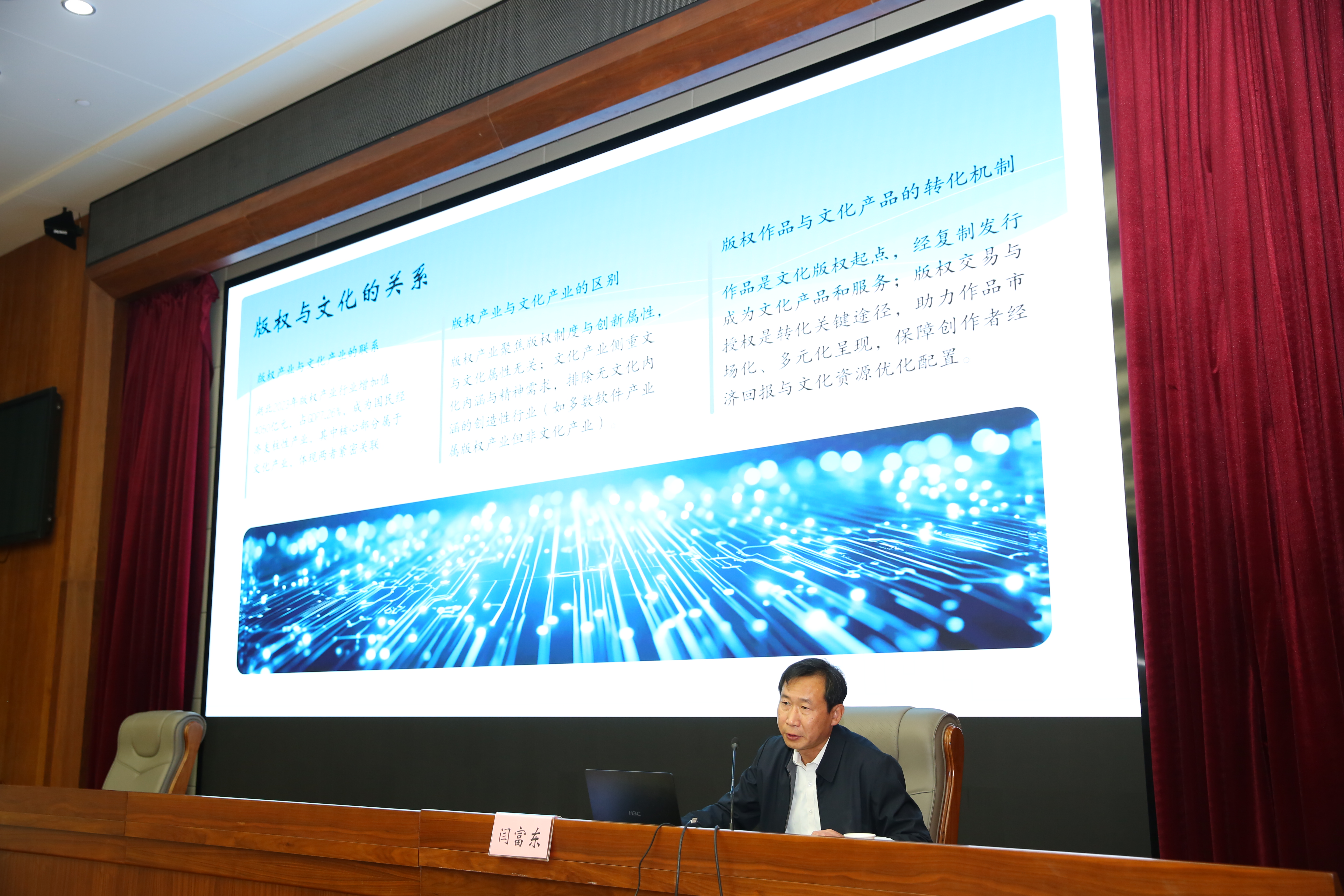 本次“处长讲堂”邀请中南财经政法大学知识产权研究中心主任彭学龙教授授课,围绕习近平文化思想赋能新时代版权事业高质量发展,提出构建面向新质文化生产力的版权治理体系。版权管理处处长闫富东从贯彻落实习近平总书记关于知识产权保护的重要论述等方面,回顾了“十四五”时期我省版权工作状况,分析了形势和任务,提出了做好“十五五”时期版权工作的思考。