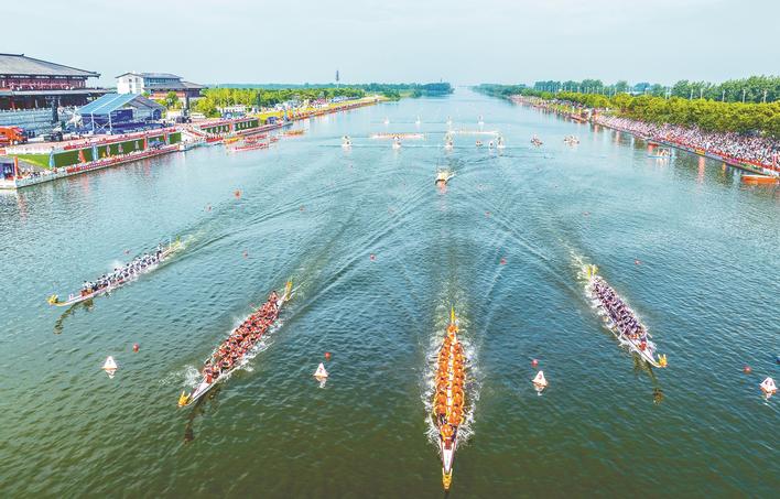 库姆巴特·2025年中国龙舟公开赛(湖北·仙桃站)在排湖旅游度假区龙舟公园精彩开赛,673名运动员飞桨逐浪、同台竞技。(吴晴霄 摄)