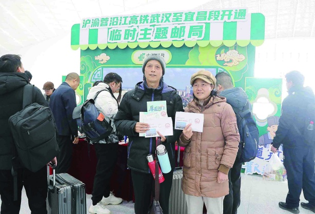 在候车大厅内,一座由荆门邮政公司搭建的临时主题邮局成为旅客驻足的热点。邮政工作人员有序向旅客赠送高铁开通纪念封,并加盖纪念邮戳。方寸之间,历史定格。“我不仅自己收藏,也给外地朋友寄了很多,希望更好地推广荆门。”荆门市集邮协会副会长肖传华表示,沪渝蓉高铁武荆宜段的开通对荆门来说是里程碑式的大事,一张张纪念封、一枚枚邮戳,如同时光的信使,携带着这座城市对未来的期盼,非常有意义。
