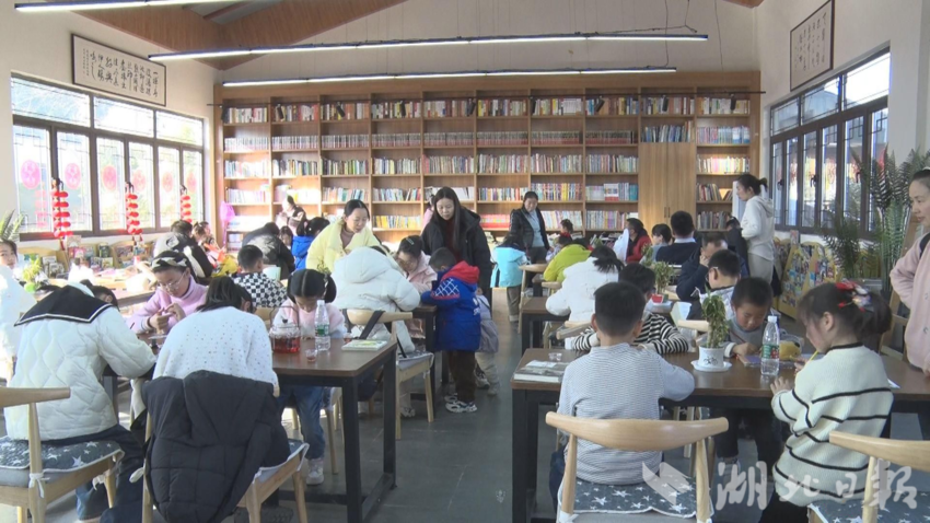 12月28日,随州广水市印台山文化生态园·城市书房,书架上各类书籍整齐排列,市民们或伏案细读,或低声交流,一派宁静祥和的阅读景象。