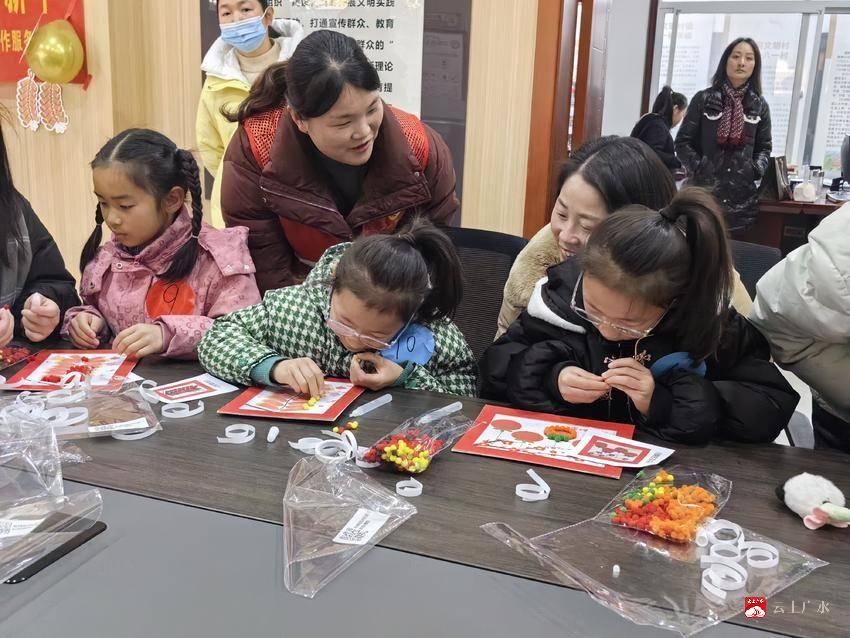 “妈妈,你看我贴的小骏马是不是很可爱?”“这个2026怎么贴才整齐呀?”12月27日,广水市新时代文明实践中心暖意融融、笑语盈盈,一场专为外地媳妇及其亲子家庭打造的“亲子共贴幸福花”DIY新年毛绒球相框粘贴画正在热闹举行。