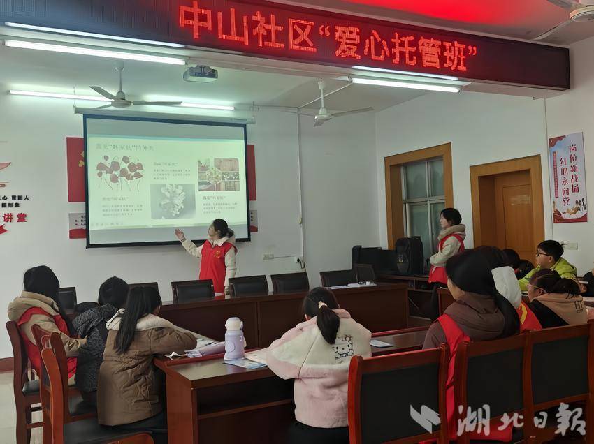 广水街道中山社区新时代文明实践站将禁毒宣传融入课堂,志愿者借助图文PPT,用通俗易懂的语言和小故事,讲解毒品种类、伪装术及新型毒品危害,还设置互动问答,引导孩子们踊跃抢答,加深对禁毒知识的理解。