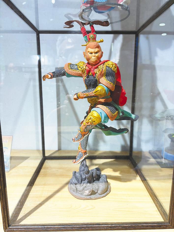 他向我们一一介绍他的作品。有可以食用的花馍,市场价每个至少10元;有各种面塑:巨大的舞台道具,装在玻璃展示盒里的孙悟空、穆桂英、关公和钟馗摆件,整齐排列的小玩偶,还有更小的卡通挂件,价格从几千元到几元钱不等。