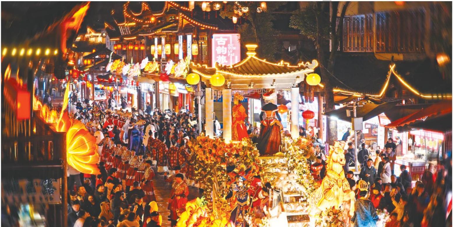在流光溢彩的灯会之中,非遗是最深厚的底蕴。作为湖北省首批非遗特色街区,恩施市女儿城将非遗表演从剧场移至街头,持续27天的“非遗新春秀”每日下午3点至晚上10点上演,恩施扬琴、宣恩耍耍、巴东堂戏、鹤峰柳子戏等武陵山区特色非遗项目轮番登场,形成多元丰富的文化展示格局,让游客近距离领略非遗魅力。