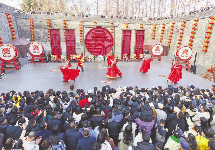 大年初一,荆州古城东门好戏连台 游客嗨翻天。 (湖北日报通讯员 梅闻 摄)