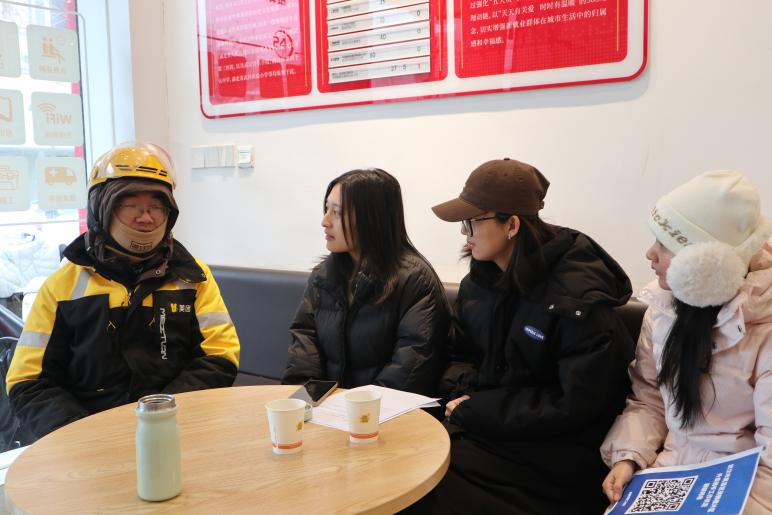 与此同时,马克思主义学院的调研队深入街头巷尾,通过面对面访谈、问卷调查,系统收集小哥们在劳动权益、心理状态、服务需求等方面的真实反馈,形成翔实报告,为实践点精准施策提供了有力的数据支撑。“用问卷记录、用真心倾听,我们触摸到了新就业群体的真实温度。”调研队成员夏萱的体会,展现了青年学子将论文写在祖国大地上的自觉。