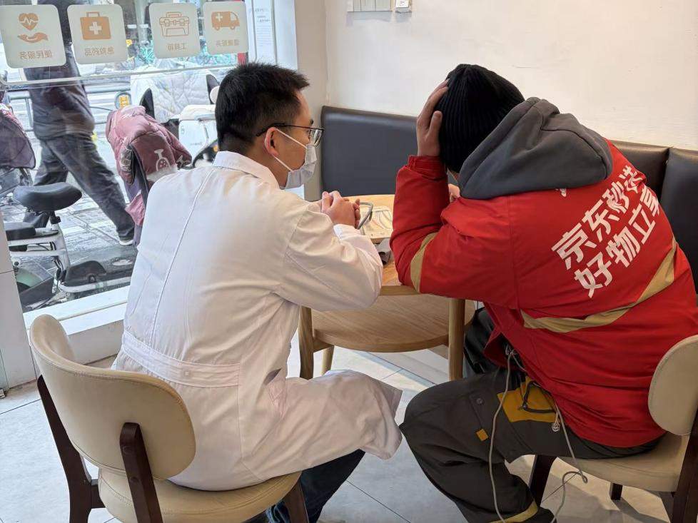 同济医学院的医博团则发挥专业所长,为户外从业者送去冬季健康科普与专场义诊。通俗讲解、现场问诊、血压检测……大学生志愿者们将“同济温度”送到群众心坎上。骑手趁着接单间隙赶来量血压,老人们在服务中心聆听防跌倒知识,这些场景让医博团成员黄丹深刻感悟:“医学的温度,就藏在耐心地问诊和通俗的讲解里。”
