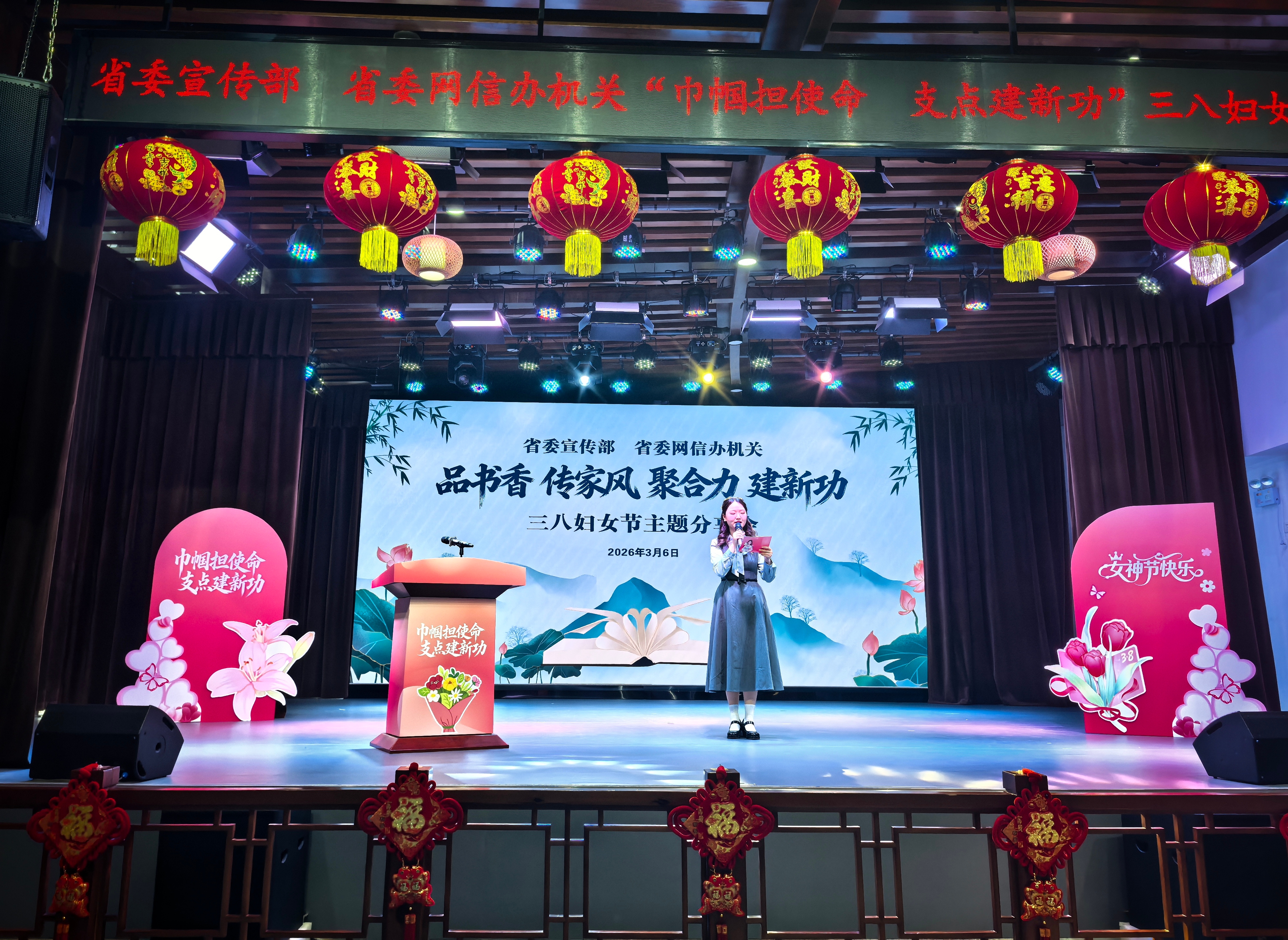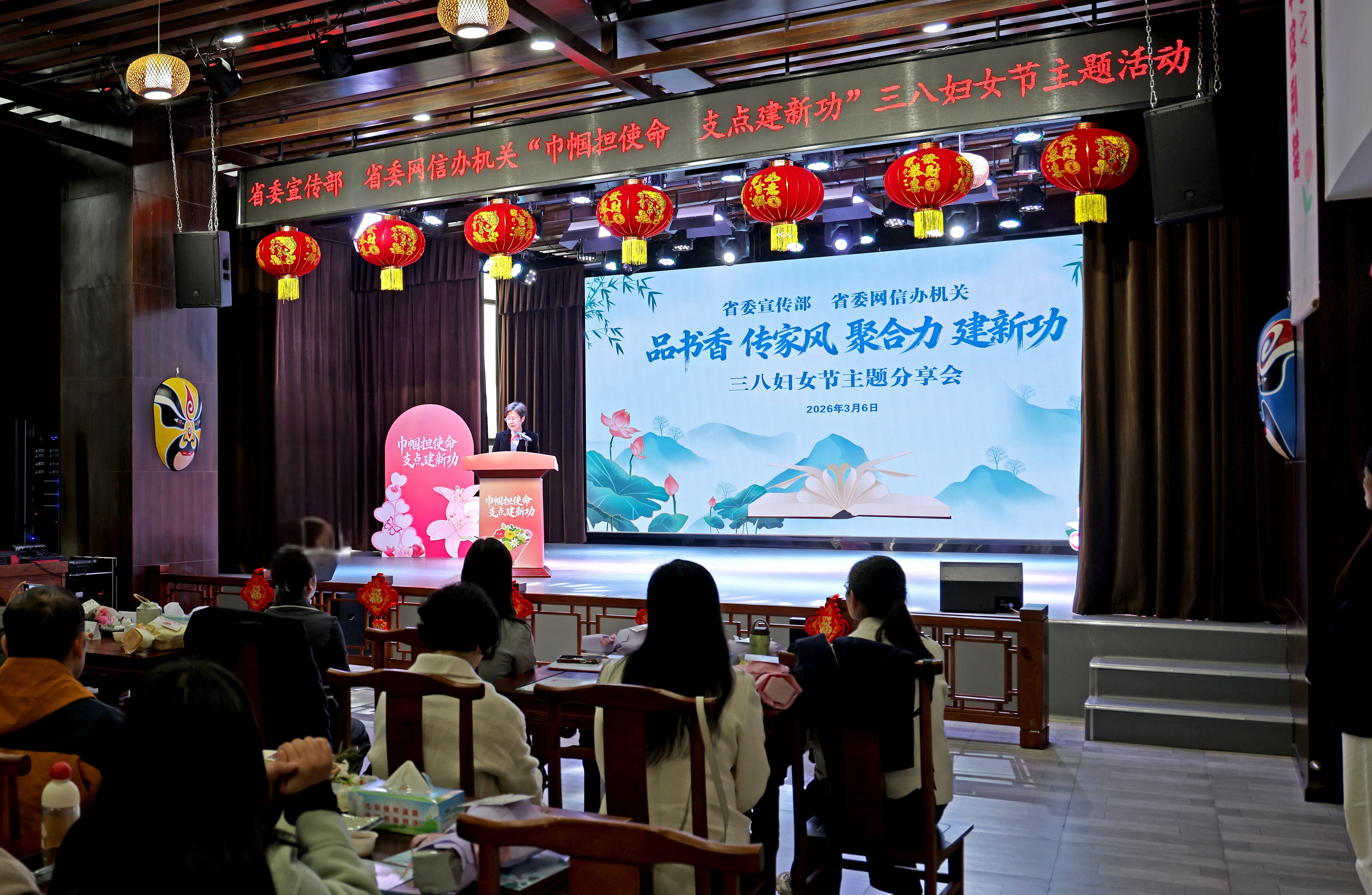 本次活动的精彩环节,由部办机关9个处室的女处长们联袂登台,带来原创的主题诗朗诵《巾帼担使命 支点建新功》。女处长们以铿锵有力的语调、饱含深情的表达,深情诠释了新时代宣传战线女干部的初心与使命,豪迈抒发了立足岗位、勇担重任、再建新功的坚定决心与壮志豪情,铿锵誓言直抵人心,将现场氛围推向高潮,也让全体女同胞深受鼓舞、倍感振奋。